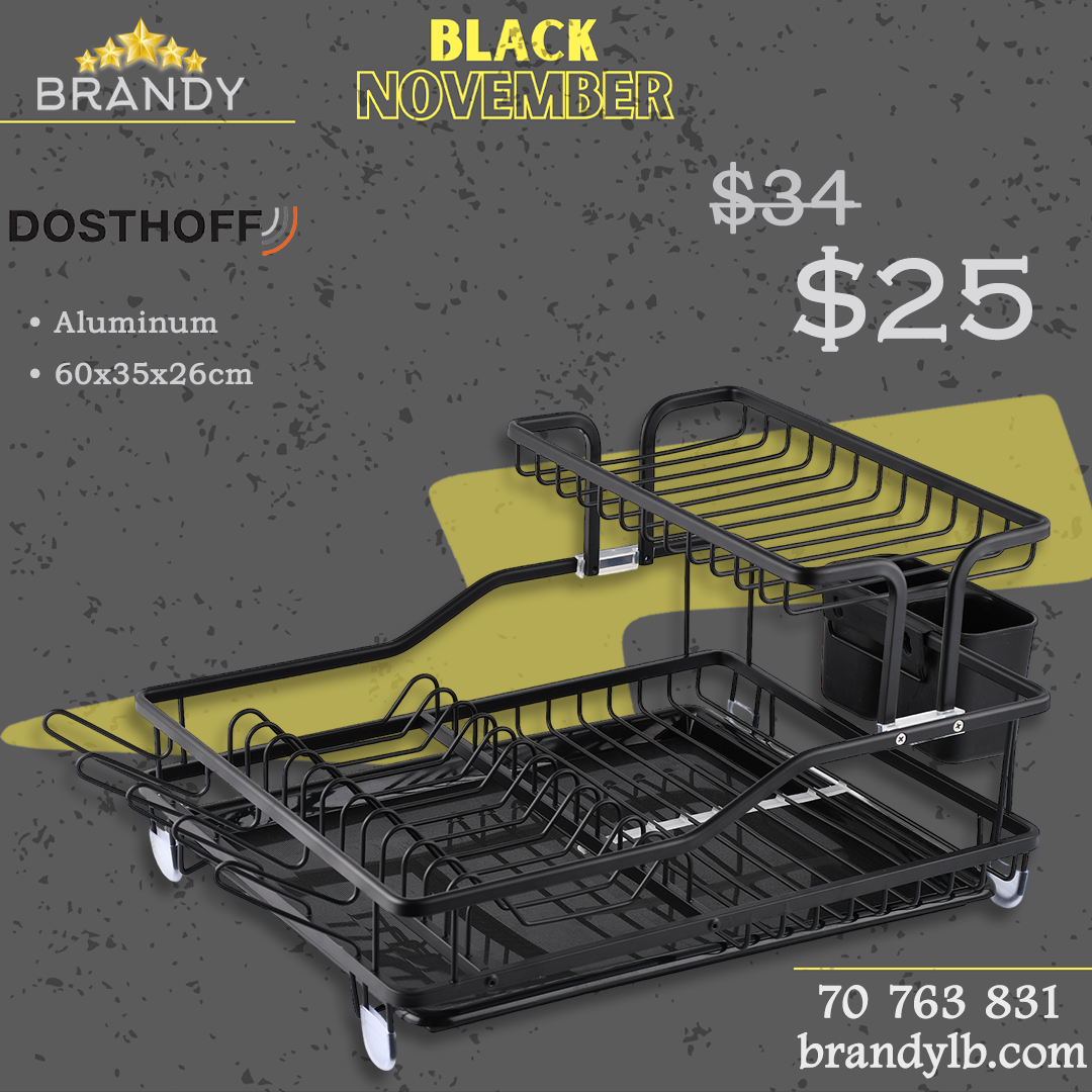 Upgrade your kitchen with the Black Aluminium Dish Rack from Dosthoff. This stylish and rust-proof rack features a side cutlery holder and a spacious design to accommodate all your dishware needs. With durable aluminium construction, it's both practical and chic, making it a perfect addition to any modern kitchen.