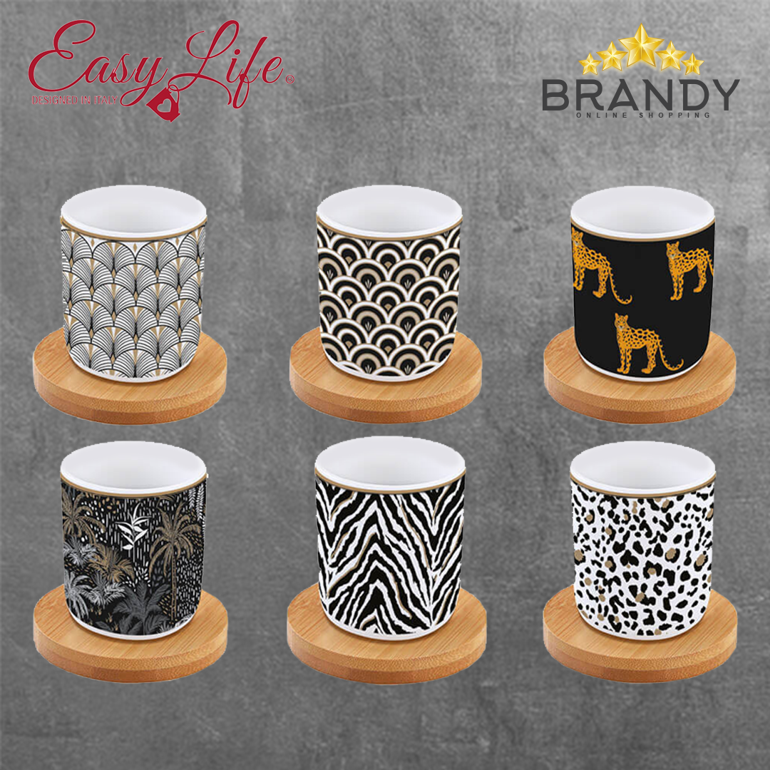 Elevate your coffee experience with the Savana Espresso Cups Set by Easy Life. This set includes six uniquely designed porcelain cups, each with a 110ml capacity, complemented by matching bamboo coasters. Perfect for adding a touch of elegance to your coffee moments.