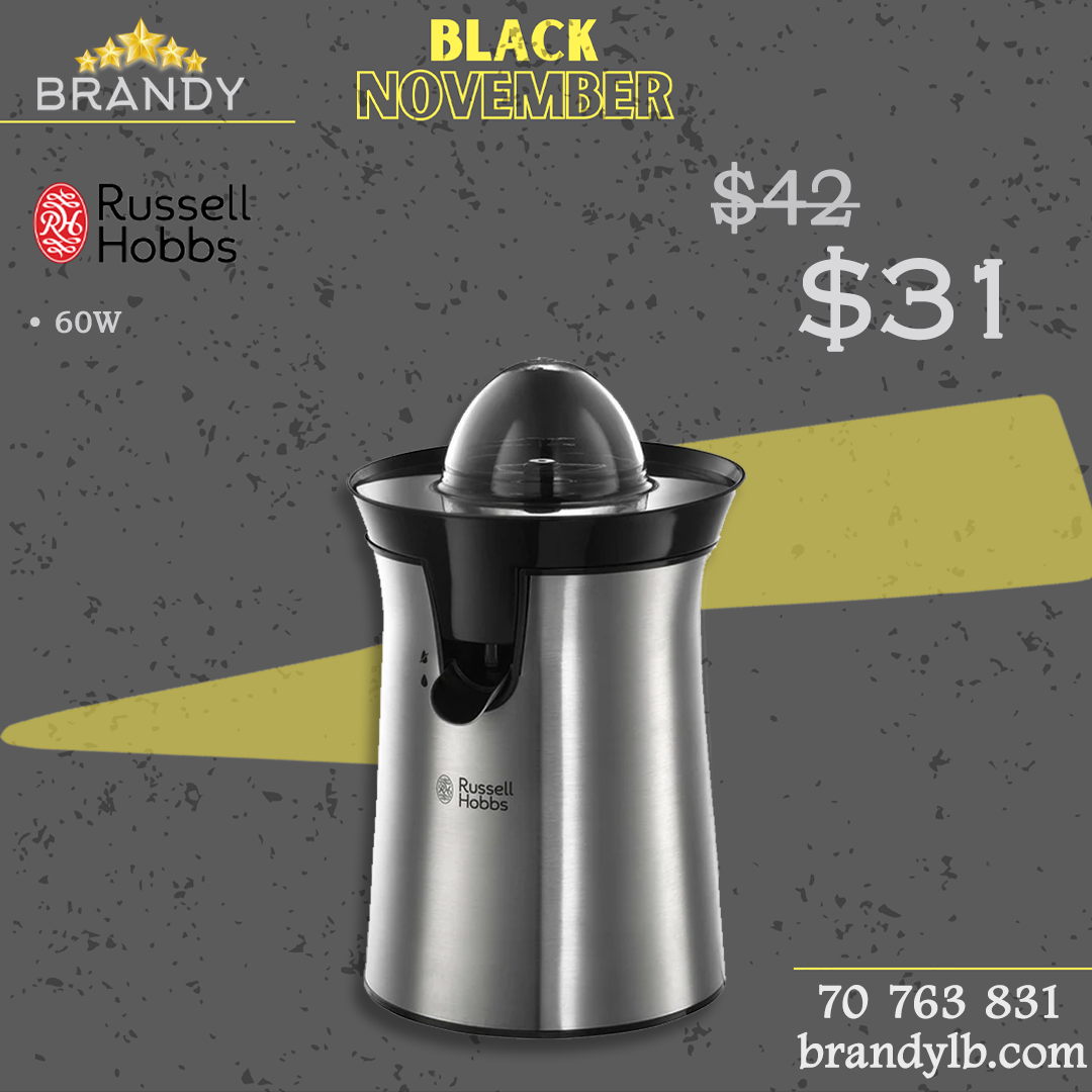 Russell Hobbs Citrus Juicer 22760 combines efficiency and style with its auto-reversing cones and brushed stainless steel finish. Featuring two cone sizes for versatile juicing, it operates at 60W power, ensuring optimal performance. The cord storage feature adds convenience.