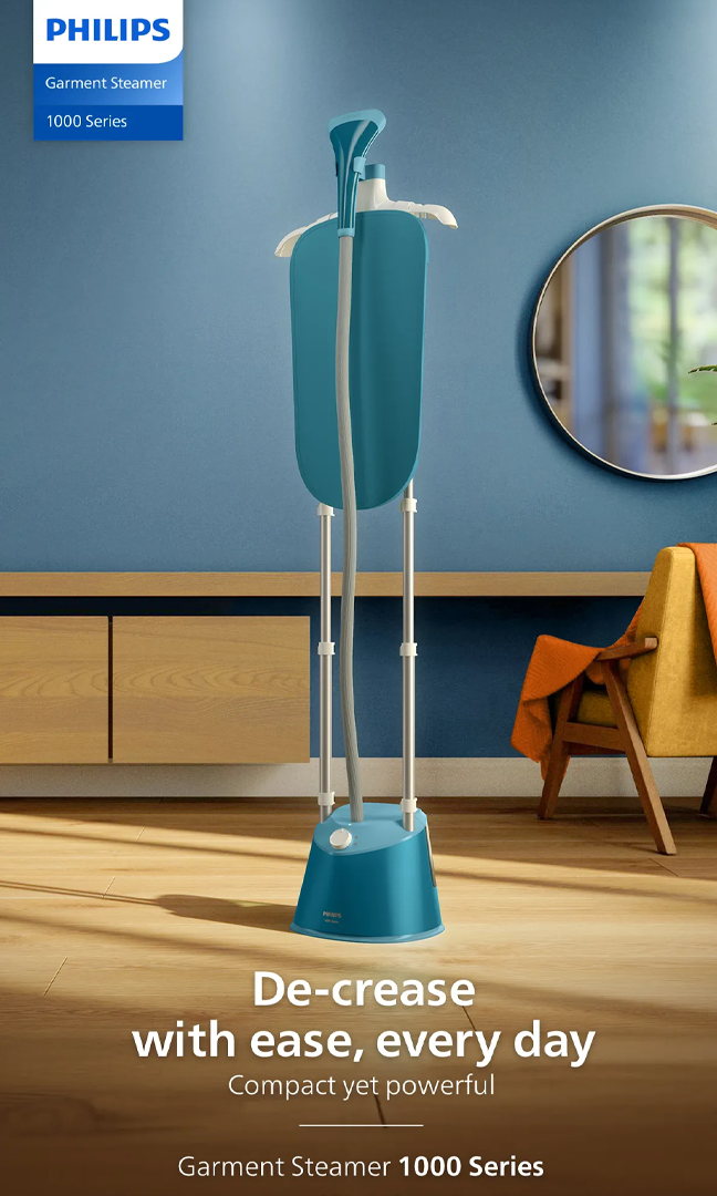 Effortlessly remove wrinkles and refresh your wardrobe with the Philips 1000 Series Standing Garment Steamer (Model STE1040/26). Equipped with a 1.8 L detachable water tank, this steamer offers uninterrupted steaming, while its integrated StyleBoard ensures comfortable, precise garment support. Ready in just 45 seconds, it’s your perfect partner for quick touch-ups and garment care routines.
