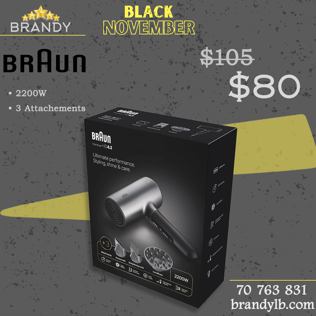 Experience superior styling with the Braun HD435 Hair Dryer. This lightweight dryer boasts a powerful 2200W motor and Super IonTec function for smooth, shiny hair. Touch LED control allows easy adjustments between 3 heat settings and 3 speeds. The cold shot feature helps set your style, while the diffuser attachment adds volume and definition. Keep your dryer in top condition with the filter cleaning indicator.