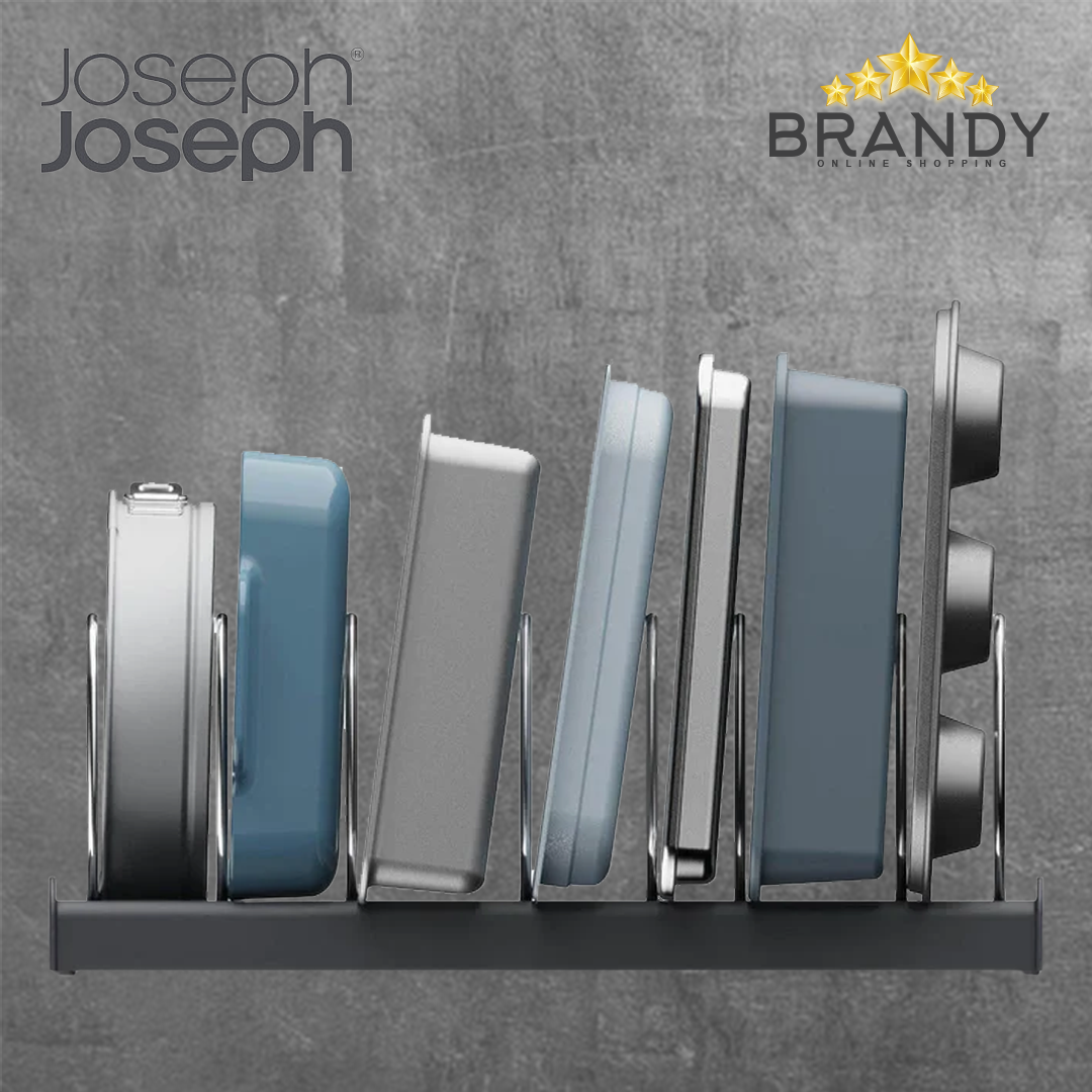 Keep your kitchen drawers tidy and your bakeware within easy reach with the Joseph Joseph DrawerStore™ Grey Baking Tray Organiser. Designed for modern kitchens, this smart storage solution helps you neatly arrange baking trays, chopping boards, tins, and lids upright—saving space and eliminating clutter. Its adjustable dividers allow you to customize storage to fit different tray sizes, while its sturdy base ensures everything stays securely in place.