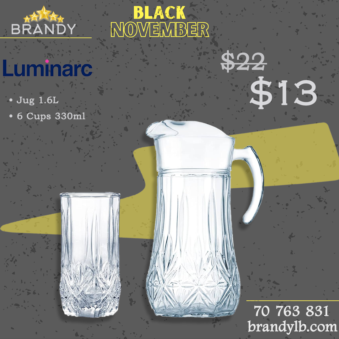 Enhance your dining experience with the Brighton Drink Set by Luminarc. This exquisite 7-piece glassware collection includes six 33cl long cups and a 1.6-liter jug, all crafted from high-quality glass. The intricate design adds a touch of elegance to any table setting, making it ideal for both everyday use and special occasions.