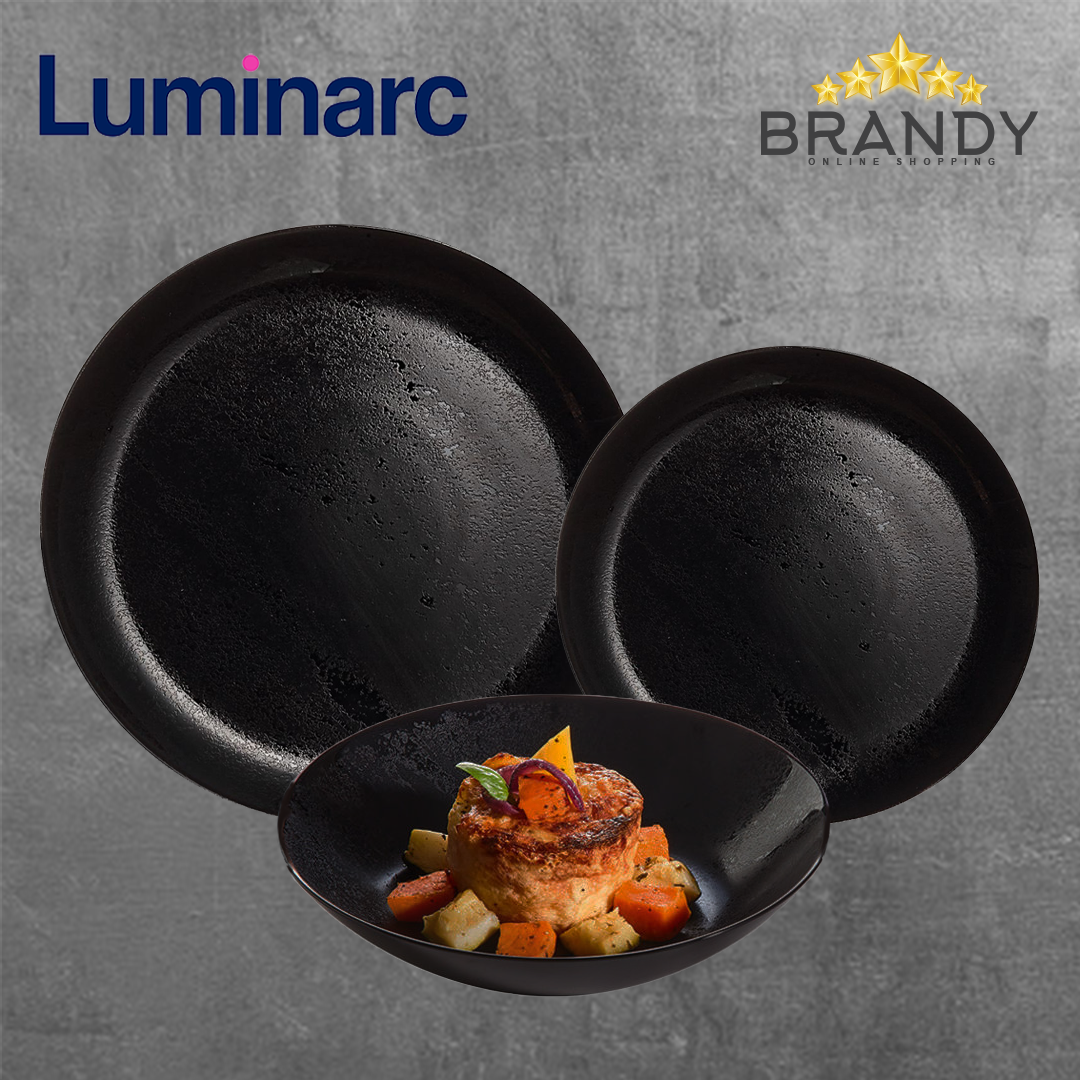 Diana Matte Black Dinner Set offers a sophisticated touch to your dining experience. This 18-piece set, crafted in France, features glass plates with a sleek matte black finish. The set includes 6 big plates (25cm), 6 deep plates (20cm), and 6 small plates (19cm), perfect for elegant dining occasions.