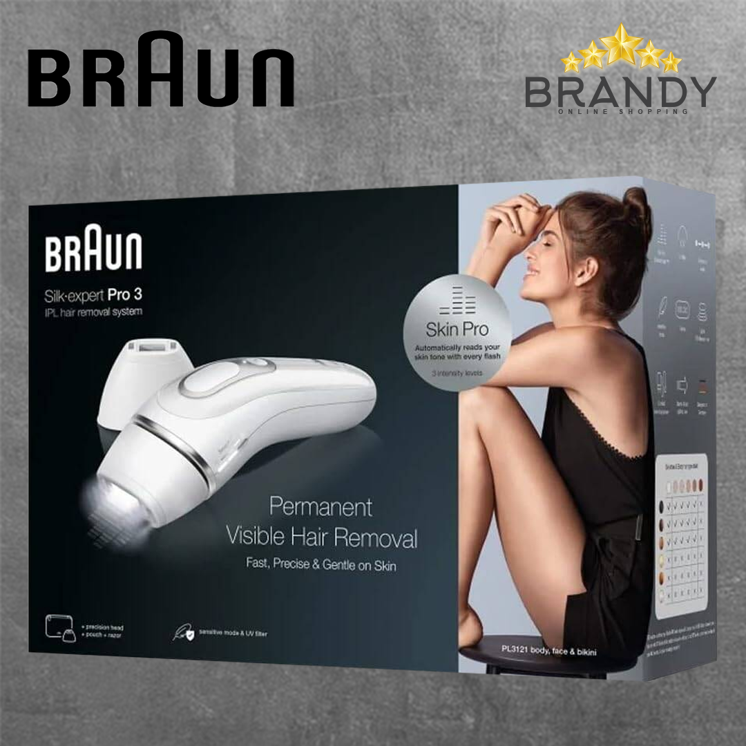 The Braun IPL3121 offers permanent visible hair reduction in as little as 3 months¹, providing fast, precise, and gentle treatments at home. Equipped with Skin Pro (Sens Adapt™) technology, it automatically and continuously adapts to your skin tone for optimal power on every body area. With up to 100 flashes per minute, treatments are effortless and efficient with fewer missed spots. The device includes multiple heads for full-body coverage, including a standard head for armpits and legs and a precision head for the face and bikini line. A gentle mode is also available, reducing light intensity to safely treat sensitive areas.