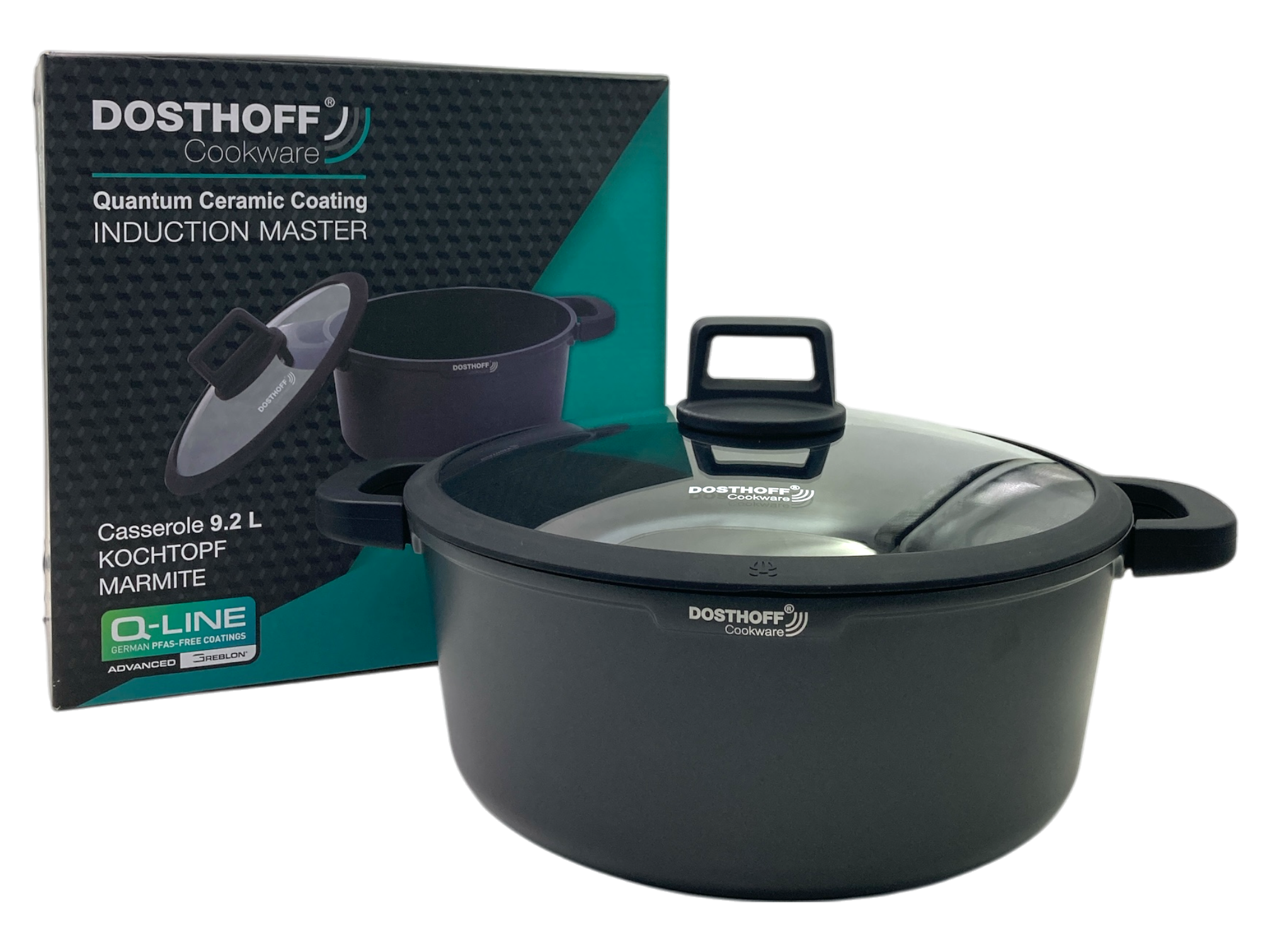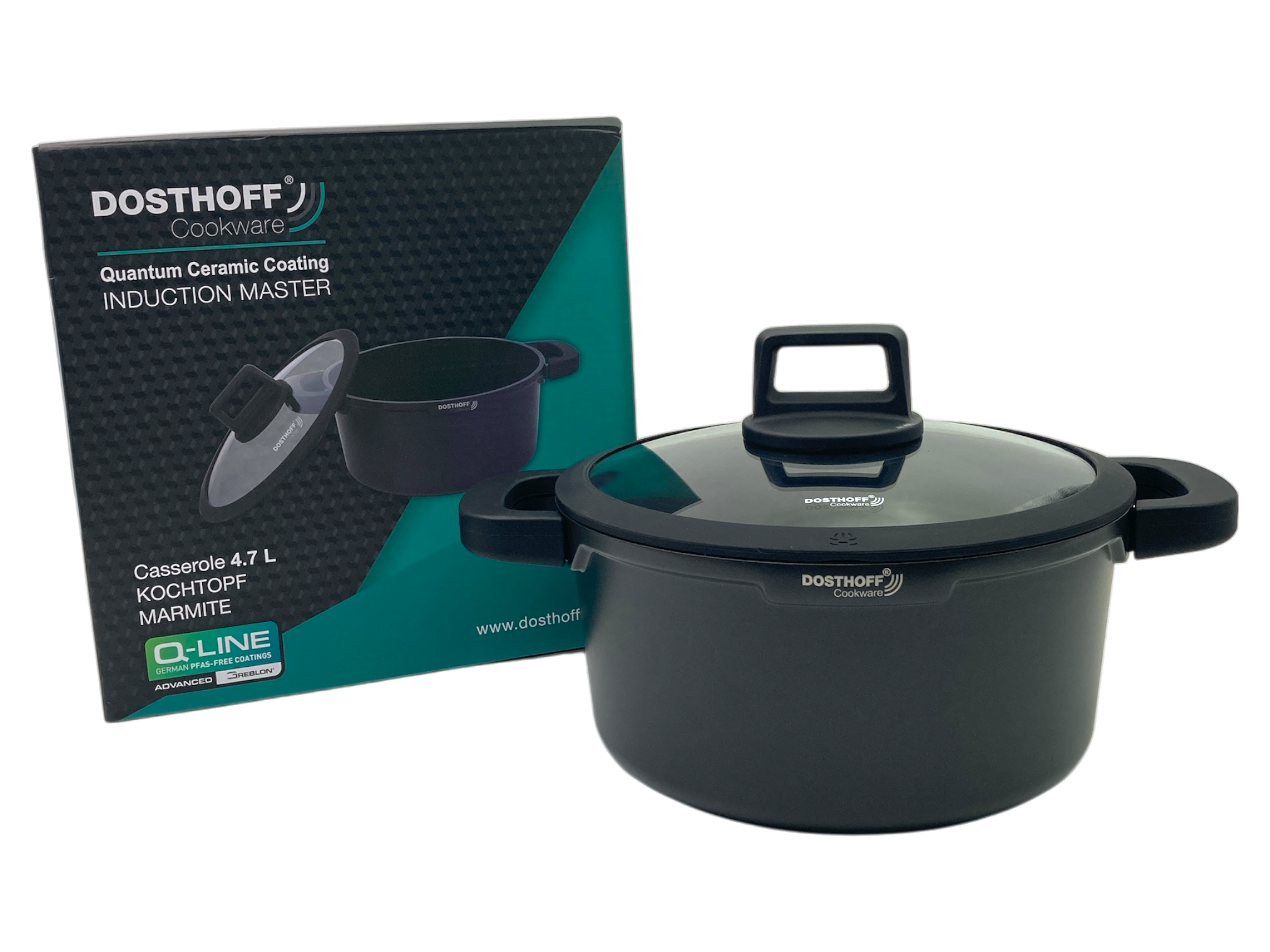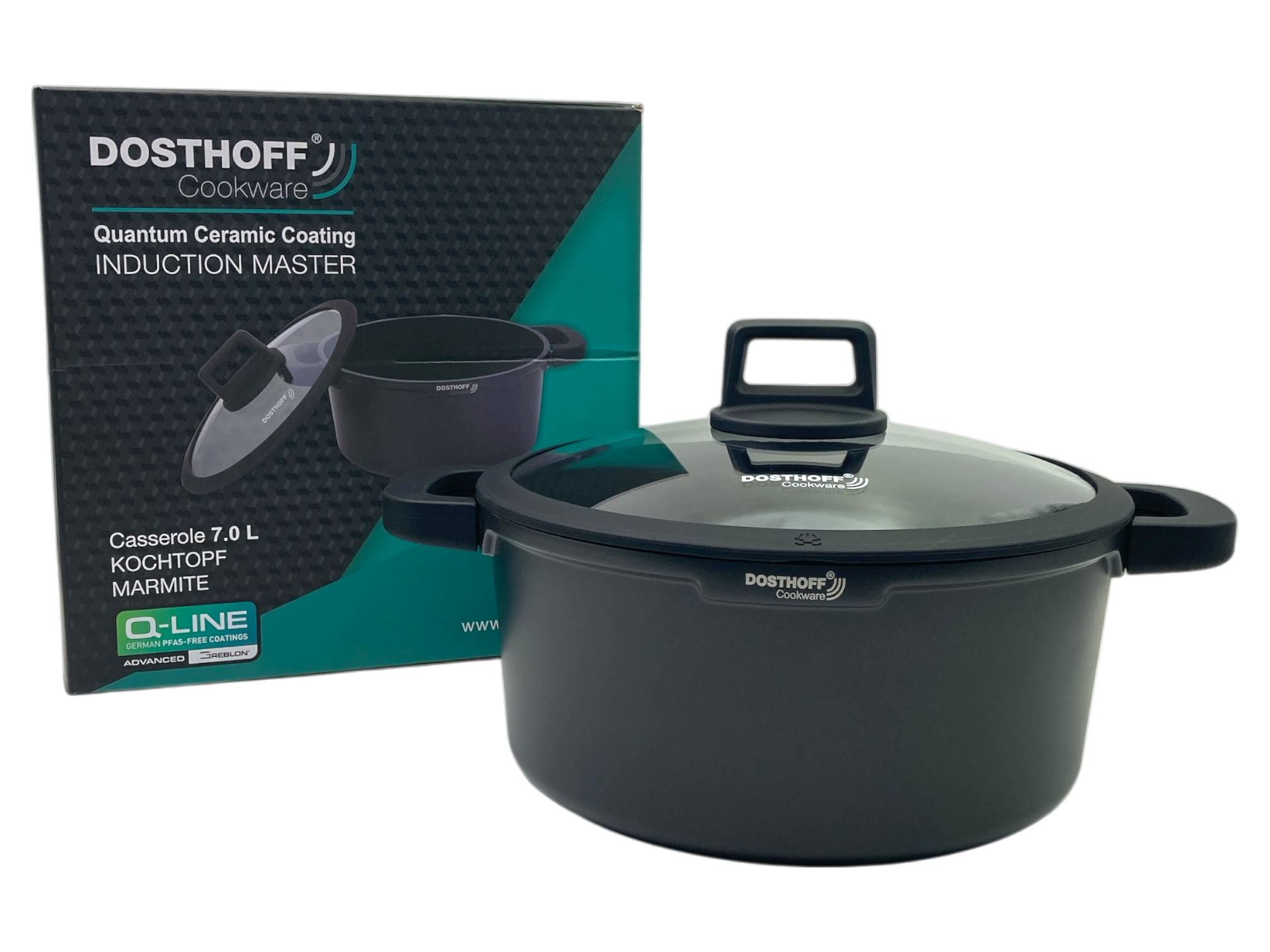 Ceramic Pot by Dosthoff offers superior non-stick performance with its ceramic material, ensuring easy cleaning and versatile use across all hob types, including gas, electric, and induction. This cookware is PTFE & PFOA free, oven and dishwasher safe, making it a healthy and convenient choice for your kitchen. Available in various sizes, it suits any cooking need, from small meals to large gatherings.