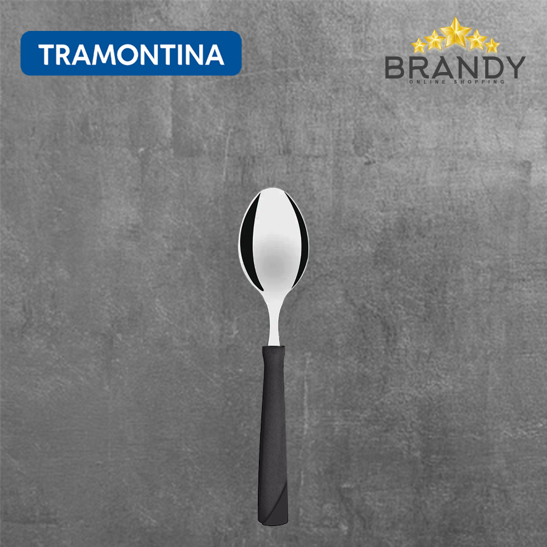 Enhance your dining experience with the Tramontina New Kolor Black Spoons Set. Crafted in Brazil, these knives feature durable stainless steel material and sleek black handles for a modern look. Perfect for any table setting, this 12-piece set is both stylish and functional.