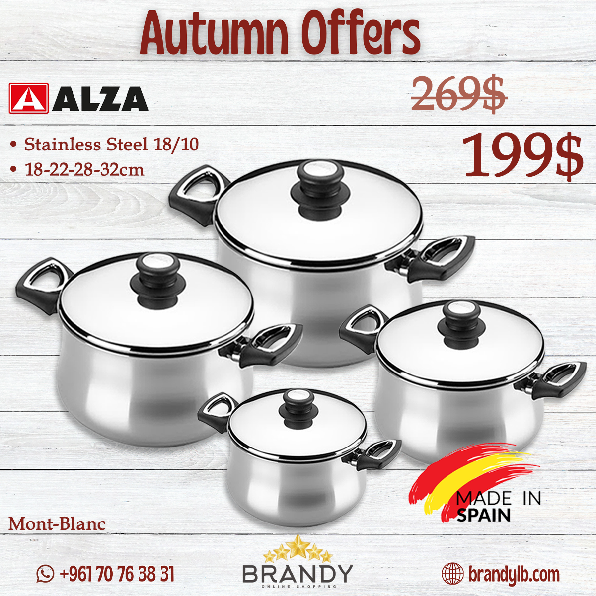 Alza Mont Blanc Cookware set is crafted from premium stainless steel 18/10, ensuring durability and even heat distribution. Suitable for all hob types, including gas, electric, induction, and vitroceramic. Enjoy the convenience of being oven and dishwasher safe. Made in Spain, this frypan combines quality and functionality.